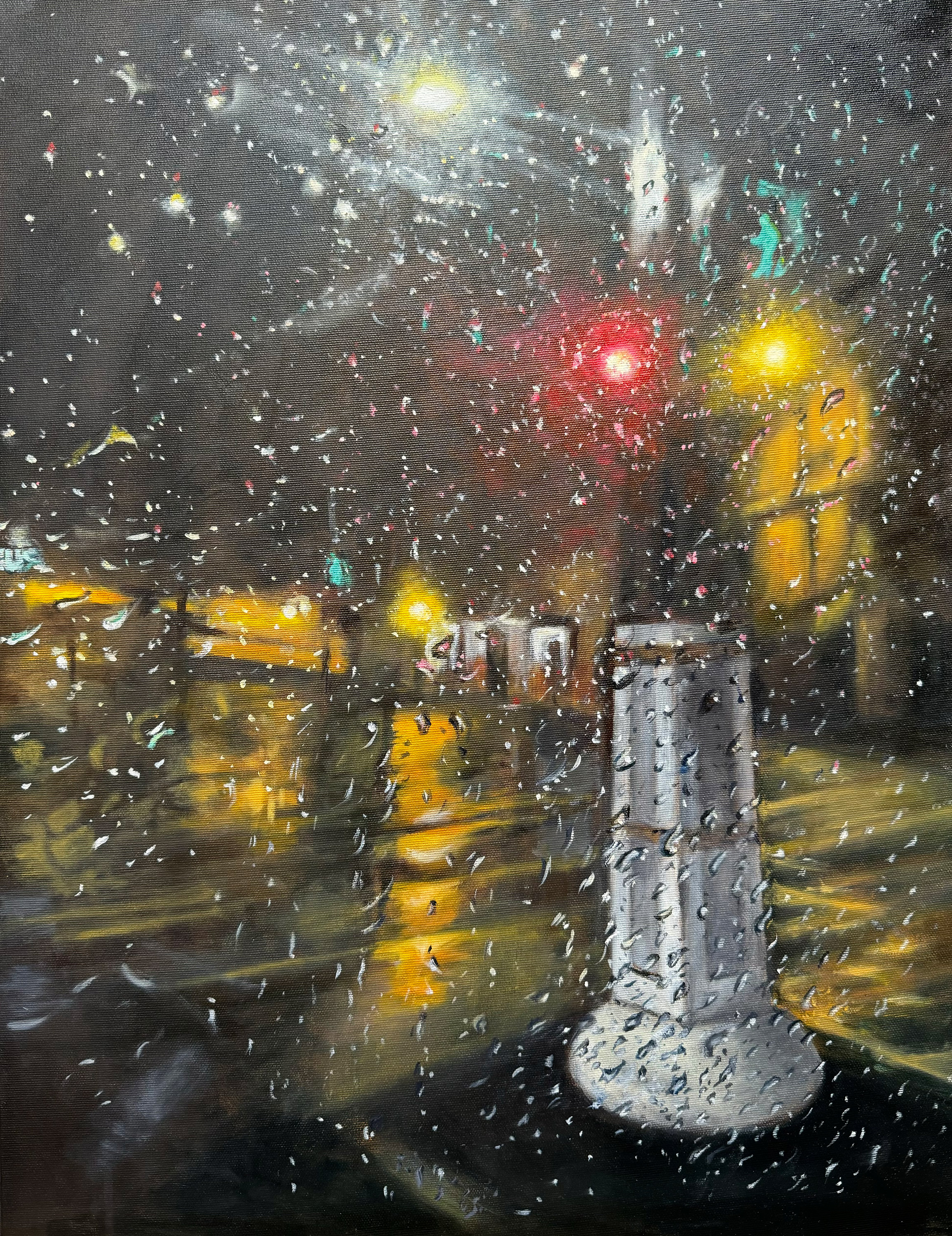 « Pluie nocturne » huile sur toile, 65x50cm, 2023