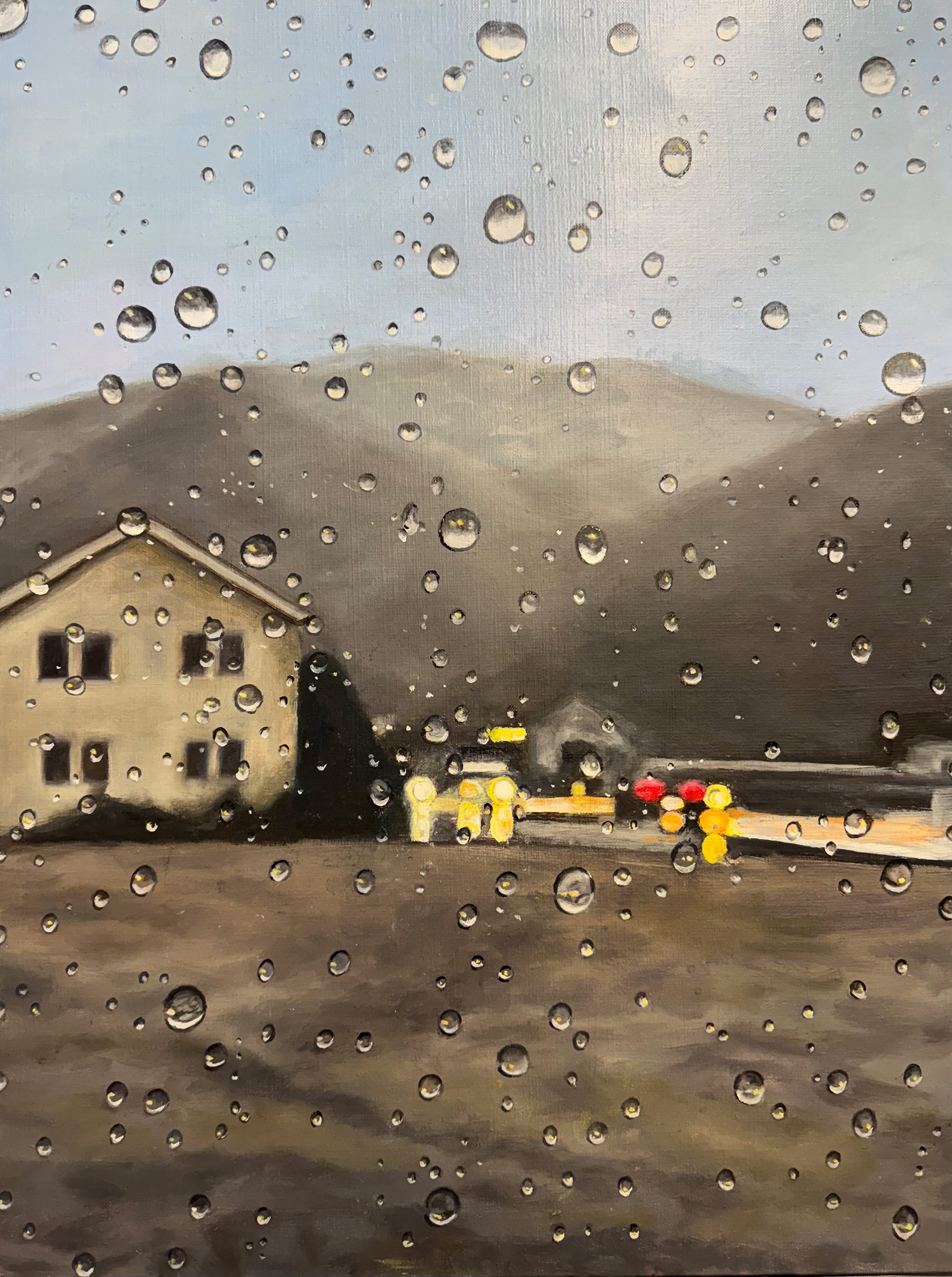 « Buenos Aires sous la pluie », huile sur toile, 65x50cm, 2023